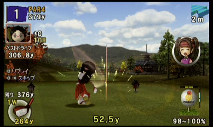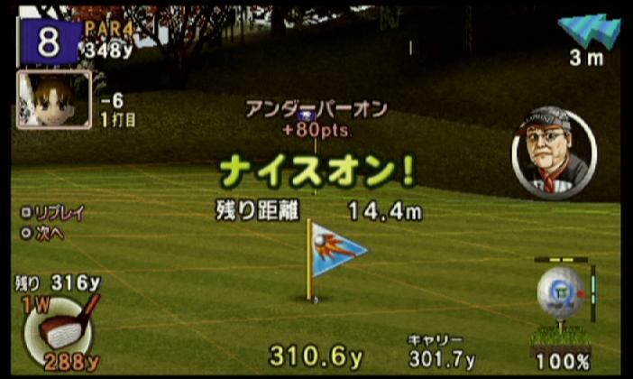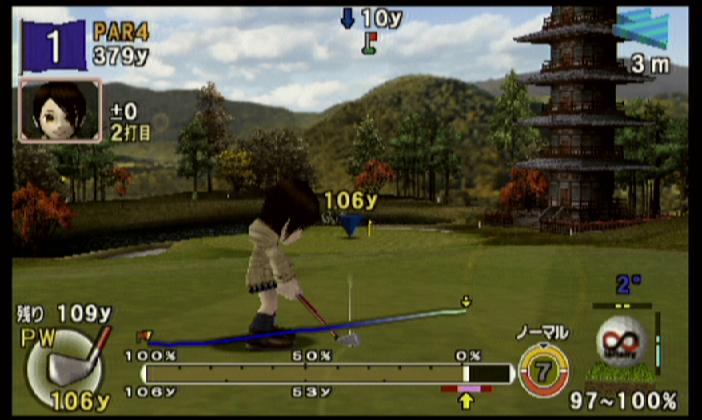 ↑ 初級キャラの場合に多かったセカンドショット…基本はジャストくらいの力加減でチップイン狙い…