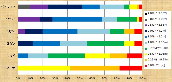 1%のキャラの場合なら、通常300Yくらい飛ばす