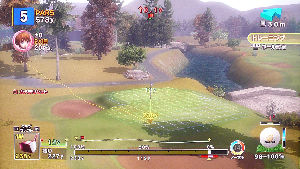 ピンを設定。さらに風もいやらしく左からの風にしました