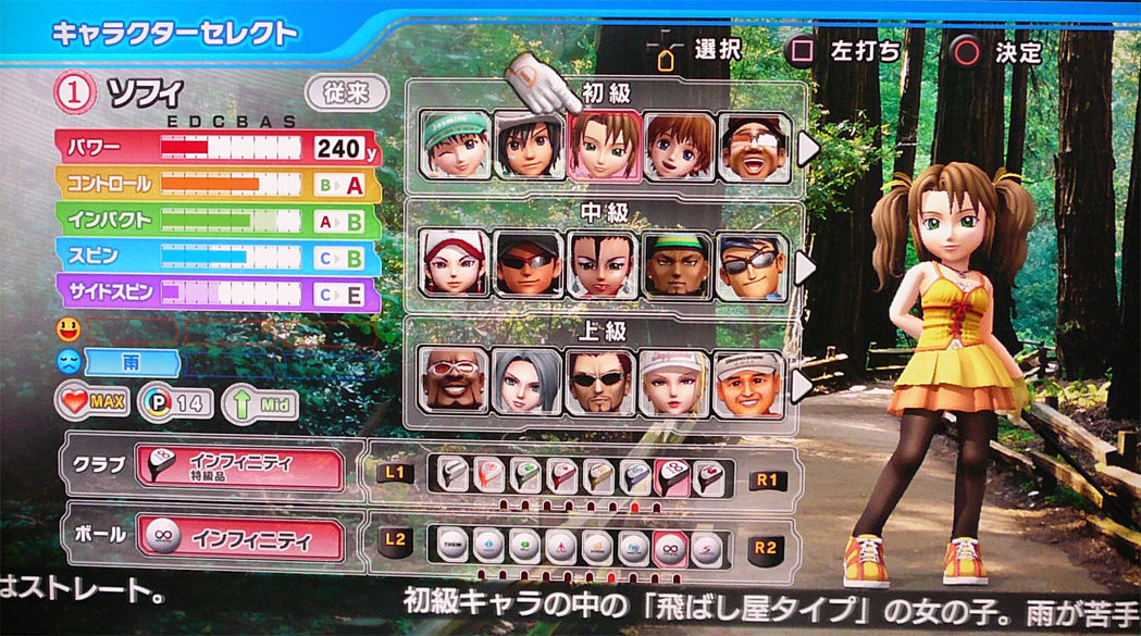 例えば、下はサファリの4番(パー5)の各キャラクターごとの